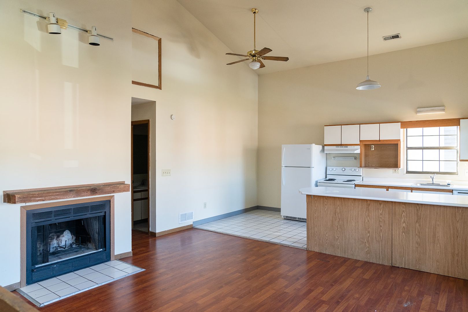 Experience the epitome of modern living in this stunning 4-bedroom, 2-bathroom apartment located in the vibrant city of Columbus, OH. This upper-level apartment boasts a spacious layout with cathedral ceilings that create an airy, open atmosphere. The modern grey painted walls and vinyl flooring throughout provide a sleek, contemporary aesthetic. The kitchen is equipped with top-of-the-line stainless steel appliances, perfect for those who love to cook. The living area features a cozy fireplace, adding a touch of warmth and comfort to the space. Step outside onto the large balcony and enjoy the view. This apartment is a perfect blend of style, comfort, and convenience.