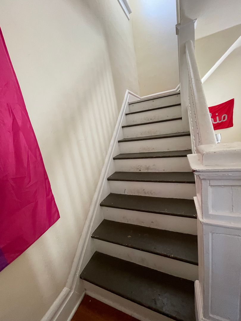 Large porch, off street parking, washer dryer hookup in bsmt, new shower bathroom, gas heat, full kitchen, living room, dinning room, 3 bedrooms 1 bath.
